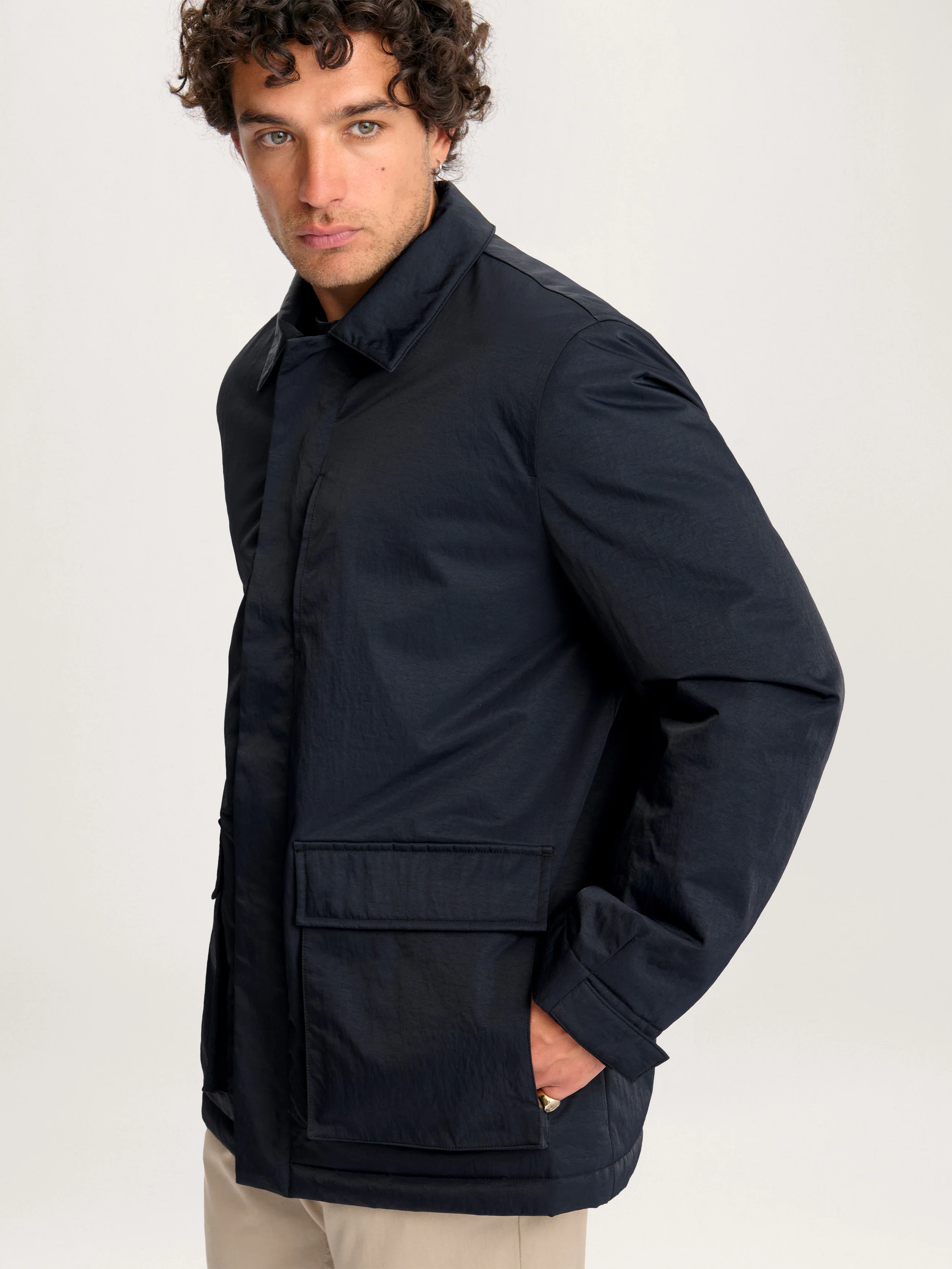 Designed with travel and the outdoors in mind, it features two patch pockets with side handwarmer entries and a hidden chest pocket for easy access and secure storage. A relaxed fit allows for a tailored feel, while clean finishes and grosgrain detailing elevate its minimal profile making it the ideal jacket for city commutes, outdoor explorations and weekends away.