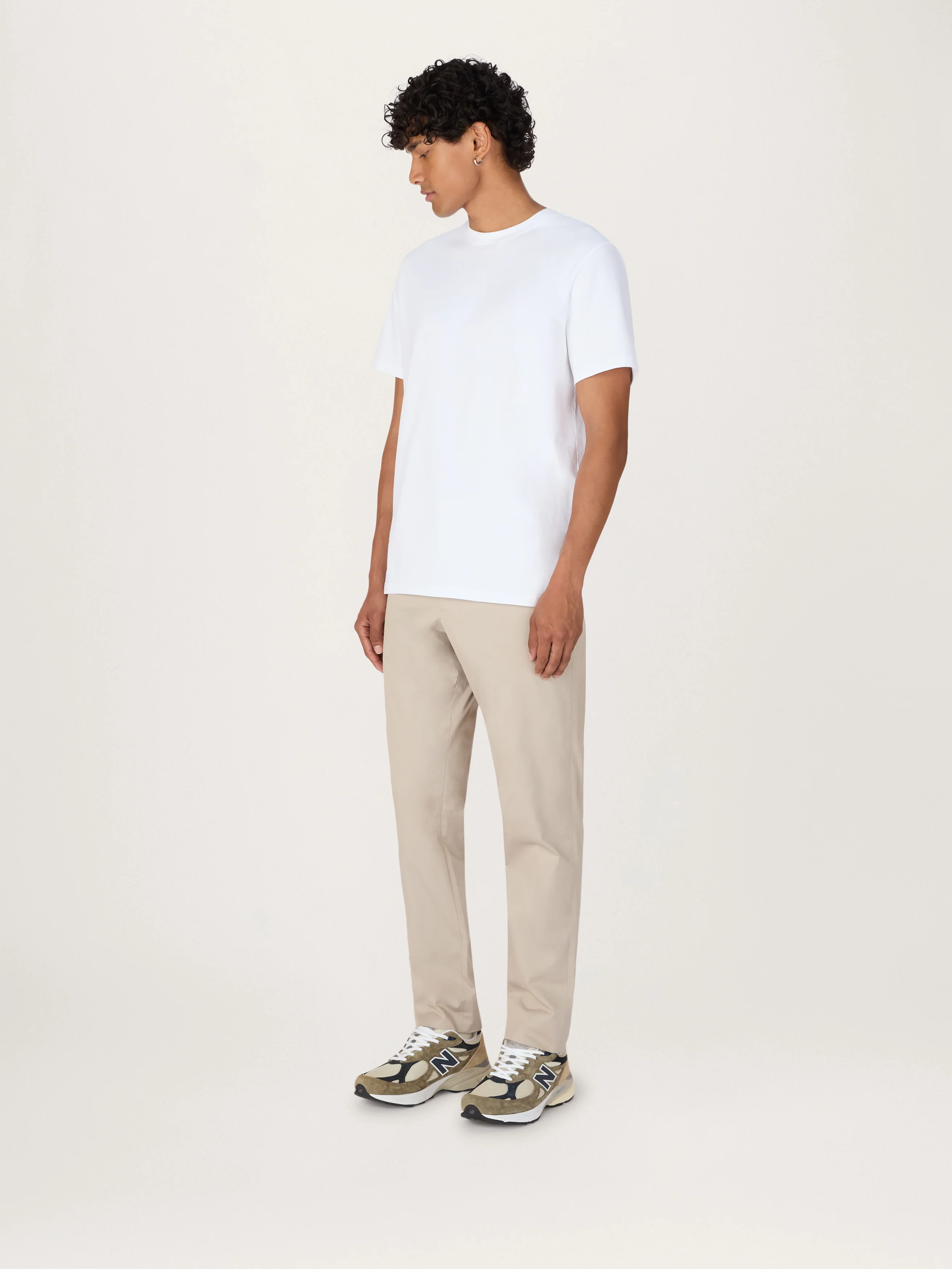A premium T-shirt made from 100% organic cotton, spun in Portugal for exceptional quality. Cut in a comfortable, substantial 220gsm weight that feels reassuring on the body yet breathable for year-round wear. Designed with a relaxed silhouette that offers ease without feeling boxy, it features a soft ribbed neckline and a smooth, elevated handfeel. With just the right amount of structure, it drapes effortlessly for a flattering fit and a timeless staple you’ll reach for again and again.