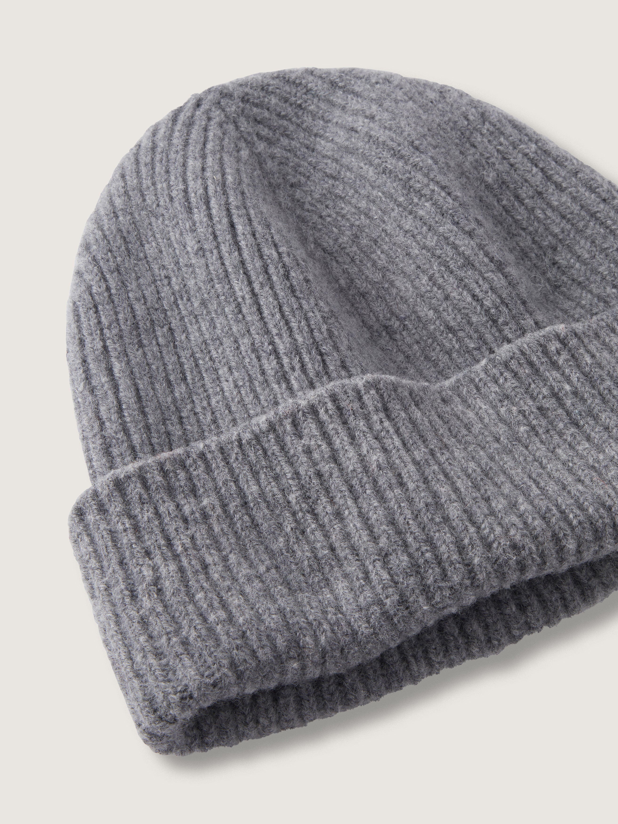 A chunky and ribbed knitted hat made from 100% lambswool in Scotland.
